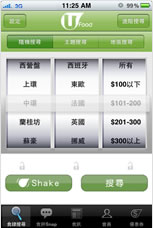 經常外出吃飯的你,有沒有試過以下經驗︰明知銅鑼灣的餐廳眾多,但左思右想東張西望,還是無法作出抉擇?U Food iPhone App設有「隨機搜尋」功能。你只要按「Shake」或搖動你的iPhone,U Food就會為你找出同區的精選餐廳, 從此shake甚麼就吃甚麼,煩惱一掃而空。!