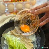 1.將蝦、蛋漿和生菜鋪在米紙上,邊緣倒入15毫升的水,蓋上蓋子細火焗2分鐘。