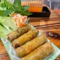 越式春卷皮(米紙)裹包🈵滿饀料、肉碎、木耳絲、紅蘿蔔絲等等、新鮮即炸金黃、香脆不油膩、生菜包捲、並沾點魚露、夠fresh、清爽!