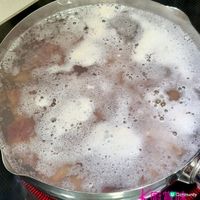 - 把豬骨汆水