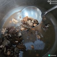 - 放豬小排/瘦肉、薑片、米酒及冷水入煲,燙至表面泛白後撈起,用冷水沖洗雜質瀝乾水分備用