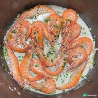 #冬日暖心回憶 蒜香奶油白酒基圍蝦 材料: 基圍蝦 1斤(約500克) 蒜粒 5-6瓣,切碎 牛油 約30克 白酒 50毫升 牛奶 50毫升 蔥花 適量 黑胡椒 適量 鹽 少許 做法: 基圍蝦洗淨,剪去蝦鬚並挑出蝦腸,瀝乾備用。 在熱鍋中放入牛油溶化,加入蒜粒爆香至金黃色。 放入基圍蝦快速煎炒,直至蝦殼變紅略微捲曲,加入黑胡椒調味。 倒入白酒,讓酒精稍微揮發約1分鐘。 加入牛奶,轉中小火燜煮1-2分鐘,讓蝦充分吸收奶香與酒香,期間可依口味加少許鹽調味。 起鍋前撒上蔥花提香,即可盛出享用。 此食譜融合牛油的濃郁,蒜香與白酒的清雅,再以牛奶調和口感,黑胡椒添辛香,非常適合製作美味的基圍蝦料理。 #基圍蝦食譜#白酒煮蝦#蒜香奶油基圍蝦# #COOKwithUCreator#速煮系列#西式食譜#健康食譜