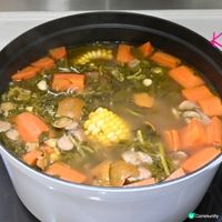 阿媽成日話飲多碗湯😂我決定聽話勤d煲湯兼同大家分享煲咩湯好💓鍾意嘅記得save低同share俾朋友,齊齊飲多碗啦~ 今次第一篇煲個 「金銀菜陳腎豬骨湯」,因為想清熱同止咳,呢排好多人咳極都唔好,喉嚨又乾又痕,諾諾又成日生痱滋🙄煲呢個菜湯就啱啦👍🏻陳腎清熱,如果怕白菜太寒可以加埋陳皮👍🏻 材料: 菜乾 白菜 陳腎 西施骨 紅蘿蔔 粟米 陳皮 蜜棗 南北杏 *菜乾浸水1小時左右,根部唔要 #湯水食譜#湯水食譜