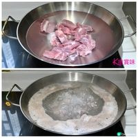 - 於細鍋中煲滾水,加入西施骨汆水約 5 分鐘,取出備用