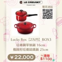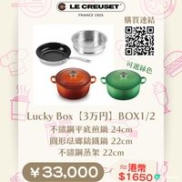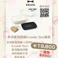 日本福袋不是只有服飾!🎁熱愛烹飪的您絕對不可錯過各大廚具品牌推出的福袋,將人氣家電、經典鍋具、及專業器具一網打盡,升級您的廚房裝備! 今年我精選了時尚家電 BRUNO、手沖咖啡器具品牌 HARIO,以及頂級鑄鐵鍋 Le Creuset,整理出最全面的搶購清單,掃圖入面嘅qr code就可以去到官方網店!💯 🇫🇷 Le Creuset:頂級琺瑯鑄鐵鍋 日本買Le Creuset本身已經平成千蚊,而家福袋價入手仲抵Le Creuset官方今年共推出了8款福袋,分別有 1万円 (約 HK$550)、2万円 (約 HK$1,100)、3万円 (約 HK$1,650) 同 5万円 (約 HK$2,750) BOX,全部都有琺瑯鍋!🤩 ❤️ BRUNO:時尚多功能家電 日本家品品牌BRUNO以精緻設計及迷你家電著名,很受小資女歡迎!BRUNO官方今年共推出了8款廚房電器福袋,包括多款人氣電熱鍋。🍚 價格從 ¥9,350 (約 HK$468) 至 ¥19,800 (約 HK$990),高價位福袋(約 HK$990) 包含適合派對的橢圓多功能電熱鍋(附深鍋、烤盤等),中價位福袋(約 HK$660- HK$825) 涵蓋多款家電,如蒸氣烘焙烤箱、單功能微波爐,以及迷你研磨器咖啡機。低價位福袋(約 HK$468)則是迷你發酵機與多功能料理鍋組合。🥗 💡 購買貼士:日本BRUNO使用110V電壓,在香港使用需配合變壓器! ☕ HARIO:專業飲品器具 在手沖咖啡界享負盛名的Hario以其耐熱玻璃名物聞名,除了咖啡濾杯外,它們的茶壺及冷萃壺也很受歡迎!HARIO今年共推出了4款咖啡用具及茶具福袋,包括人氣茶壺「茶茶急須・丸 AYAORI」。🌿 兩款內含限定色 V60 濾杯、電動磨豆機及全套手沖裝備的網店限定福袋,黑色set已售罄!🏆HARIO 福袋價格從 ¥6,600 (約 HK$330) 至 ¥9,900 (約 HK$495)。 **價格以2025年12月3日,根據資料以5算日元匯率計算總價 **價錢只供參考! 一切以商戶為準 #日本福袋2026 #廚具福袋 #廚房好物 #家電福袋 #日本攻略 #BRUNO #HARIO #LeCreuset #鑄鐵鍋 #琺瑯鍋 #V60 #咖啡 #日系家電#日本 #日本福袋