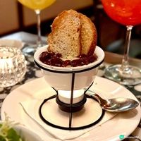 羅克福藍芝士鹹味濃烈,塗在酸種麵包,中和強烈的味道,帶有鹹香、堅果和微辣。