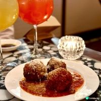 比目魚丸子上面鋪上鮮色的海膽,配上海鮮濃湯,海鮮濃湯用海鮮殼、蔬菜製成,鮮甜而不膩。