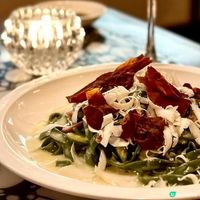 清甜蘆筍與希靈魚蓉夾在兩塊薄脆片中間,頂部輕撒一層巴馬臣芝士,最後用新鮮檸檬皮作點綴,清新又帶芝士鹹香。