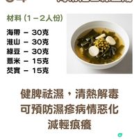 濕疹導致皮膚紅腫痕癢,除了要戒口外,中醫師建議大家不要熬夜和避免用含化學成份的護膚品。另外,以下的健脾祛濕湯也是中醫師推薦的,有助紓緩濕疹症狀,祛濕解毒。