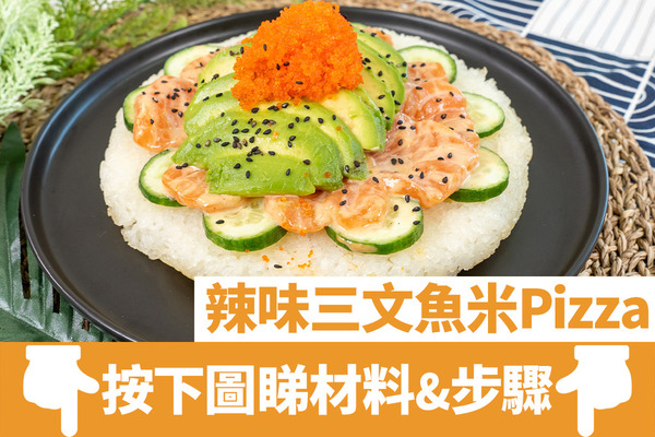 剩飯大變身!平時剩下白飯除了蛋炒飯還可做甚麽?這次有簡單4步做到的開胃辣味三文魚牛油果米Pizza食譜。炎炎夏日最適合吃清爽料理,米Pizza像變奏版的夏威夷的魚生飯Poke,賣相色彩繽紛令人胃口大開,還有大大塊足料三文魚牛油果,大家都試試這款簡單又容易做的夏日創意輕食啦~