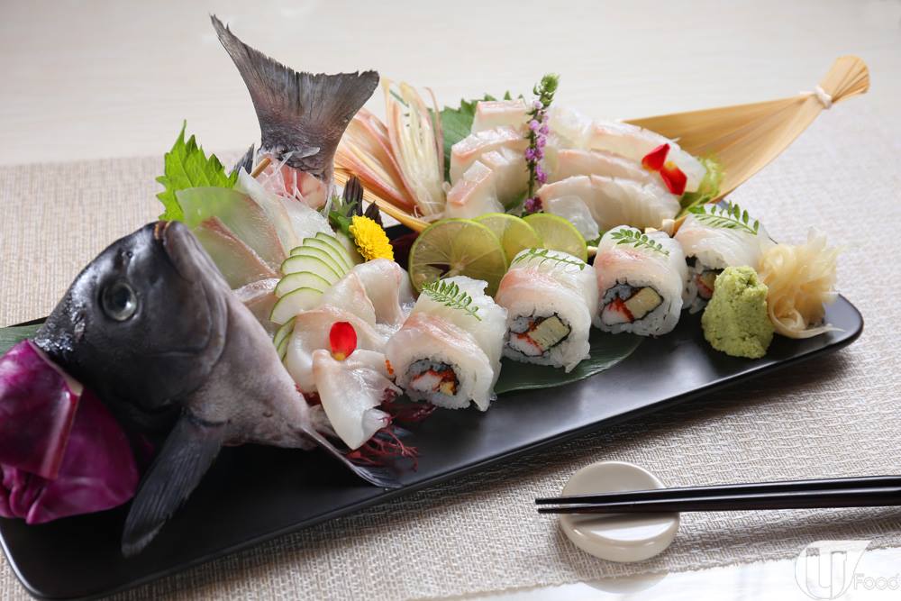 有穴子、拖羅甜蝦三文魚子、辣蘿蔔蓉金目鯛、吞拿赤身、柚子胡椒深海池魚、薑蓉左口魚、三文魚青瓜三文魚子、北海道海膽帶子卷,魚鮮均從築地運來。