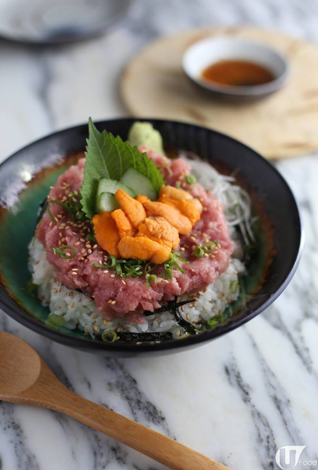拖羅蓉加海膽係無得輸嘅,拖羅蓉啖啖魚肉,不會只有肥膏,上面放了韓國馬糞海膽,海膽軟滑,撈埋油份十足的拖羅蓉吃,扒晒個飯。