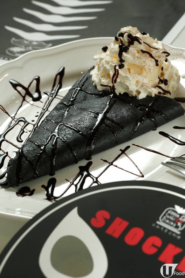 班戟皮裏加了竹炭粉,裏面配雜果及呍呢嗱雪糕。