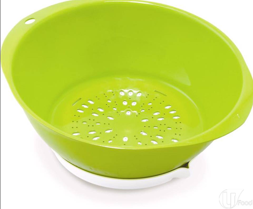 底部可調節不同大小排水孔,方便清洗不同類別的食物,同時兼作洗菜盤及筲箕,一物兩用。