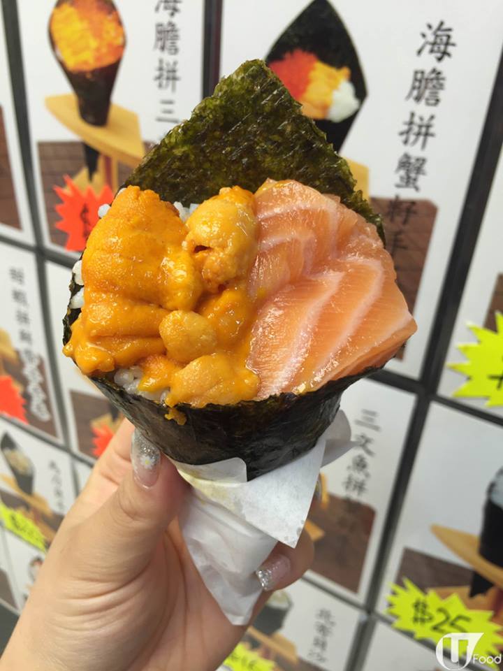 海膽拼三文魚手卷 $45