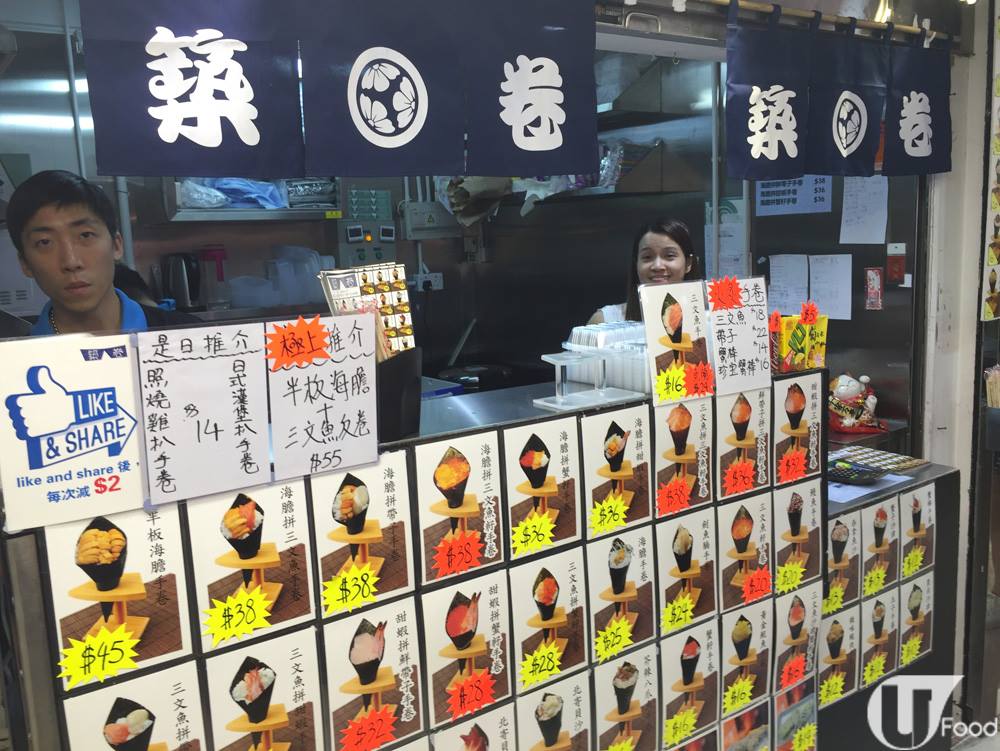 先嚟旺角中心嘅手卷駅,開咗唔夠 2 星期,已經儲咗唔少回頭客。小店有手卷、手握壽司、火炙壽司、卷物及小食 5 大類,總共近 60 款選擇,壽司每件 $5-$12 不等,最平嘅手卷好似松葉蟹棒 $13,一份 4 件的卷物 $18 就有交易,小食最貴都只是 $15,好抵食。最重要係佢地製作夠認真,庶渣價錢燒鵝味道!不過講到最受歡迎嘅一定係海膽手卷,睇吓有幾巴閉!