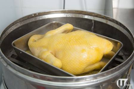 黃油雞以blend了的沙薑粉及其他調味料醃兩日至入味,皮薄肉嫩,每客飯用五分一隻份量。