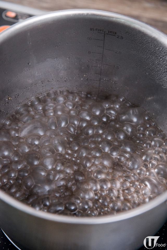 (6) 將冰糖放進煲內,加入 500 g 開水,煮溶成糖水。