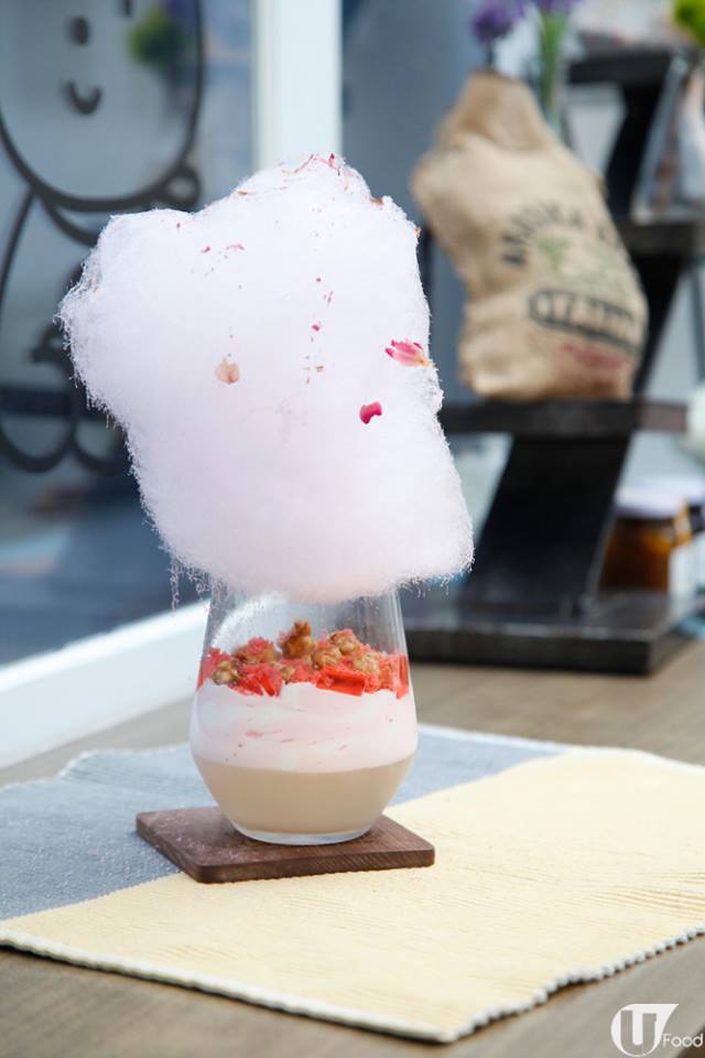 賣相好吸引!底層玫瑰果凍及慕絲溢出浪漫感覺,中間士多啤梨軟糕帶出酸香味道,而粉紅棉花糖,則灑上玫瑰乾花瓣,吸 like 指數爆燈。