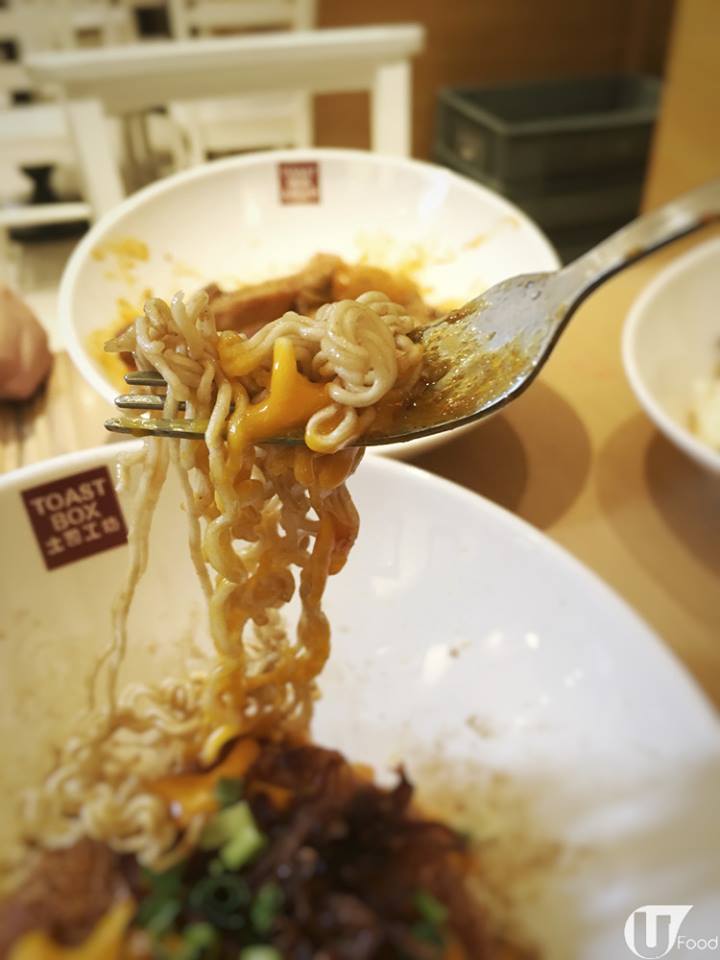 Toast Box 最近推出咗 3 款「最緊要識撈」的撈麵系列:芝士吉列豬扒芝士雞翼兩款撈麵,另有咖喱雞撈麵芝士撈麵用星洲出名的甜豉油配上芝士醬,可以想像到,又鹹又甜,星洲菜好多都係咁㗎!麵身是公仔麵,可以緊緊沾上芝士汁,加上炸至脆口的蒜片撈混食,估唔到搭調,仲幾香口惹味㖭。而咖喱雞撈麵,咖喱汁好香濃,有喇沙味!辣度適中,配油麵,比公仔麵有咬口,同咖喱亦好襯。整體來說撈麵醬汁口味不錯,做出星馬風味!如果配籵再提升就 perfect,下次去幫襯,又多一個選擇。