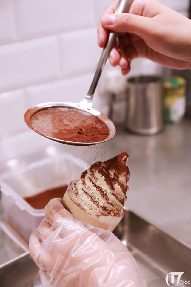 上面的軟雪糕有 牛奶雪糕、 宇治抹茶雪糕和 扭紋 3 款選擇,用北海道 3.6 牛奶製成,奶味香濃厚滑,灑上可可粉,好香。