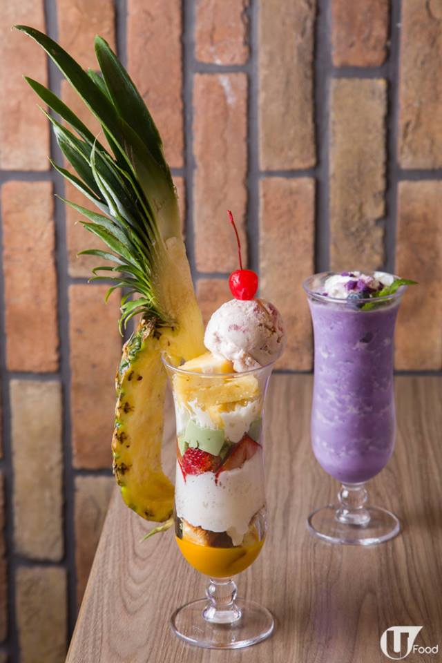 一上枱客人即嘩聲四起!大家都被充滿霸氣嘅菠蘿皮震攝。芭菲內有芒果蓉、海綿蛋糕、水果、啫喱、忌廉、菠蘿以及士多啤梨雪糕,小朋友見到肯定開心!