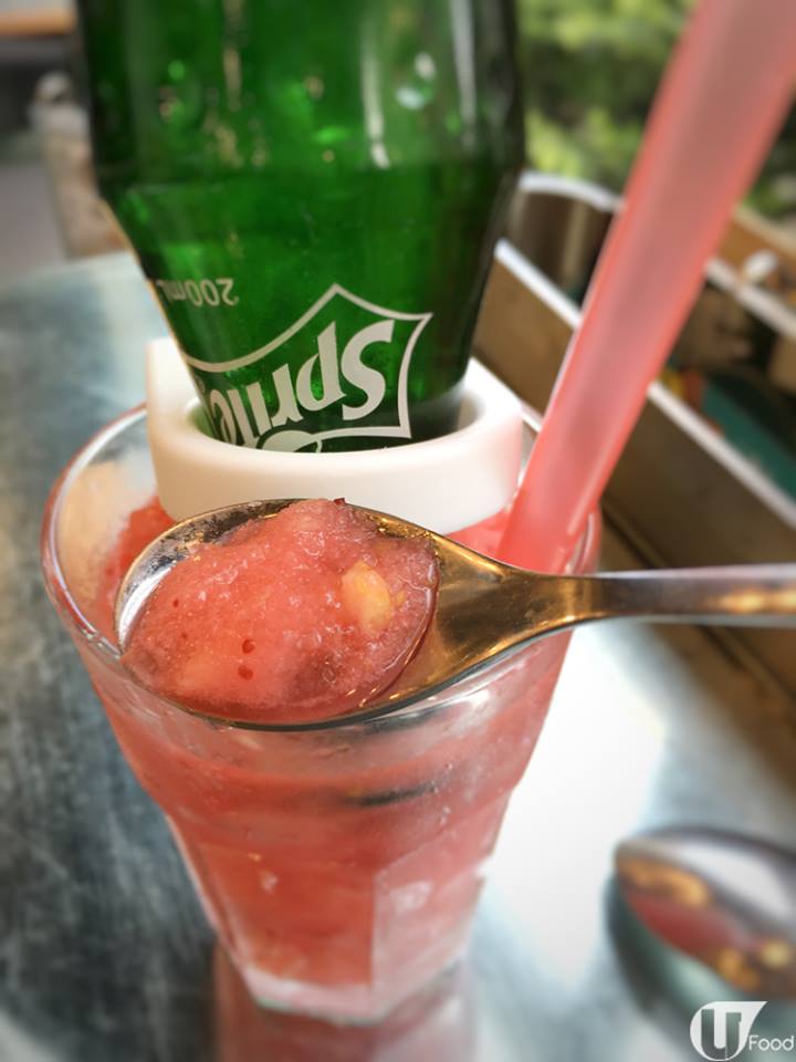 試咗草莓檸檬沙冰配支裝雪碧,味道甚似 Skittles 彩虹糖,又有檸檬清新酸味,好解渴。