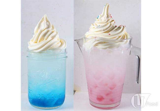 波子味及提子味汽水加冰打成 smoothies,上面仲有彩色棉花糖,吸睛度爆橙!