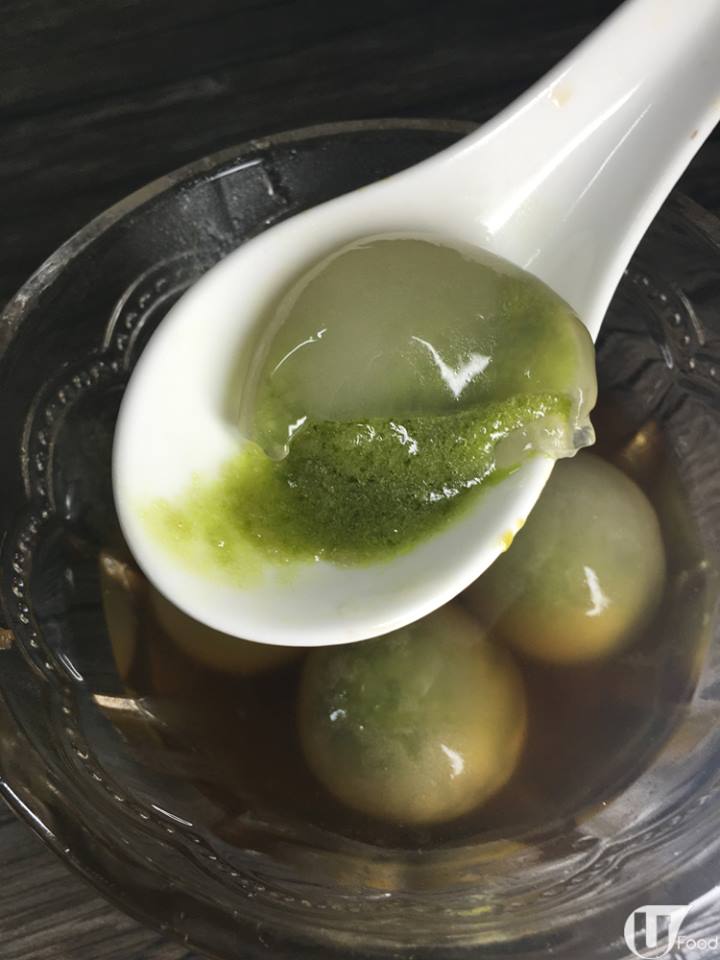 睇包裝,見到水晶湯丸晶瑩剔透嘅外表,好期待。未煮前外皮與普通湯丸顏色無乜分別,但煮熟後才見外皮變水晶皮,抹茶餡浮現成綠色,至於咬落水晶皮比一般糯米皮更滑和煙韌,抹茶餡還有一陣濃郁奶香,香香甜甜,味道有驚喜!
