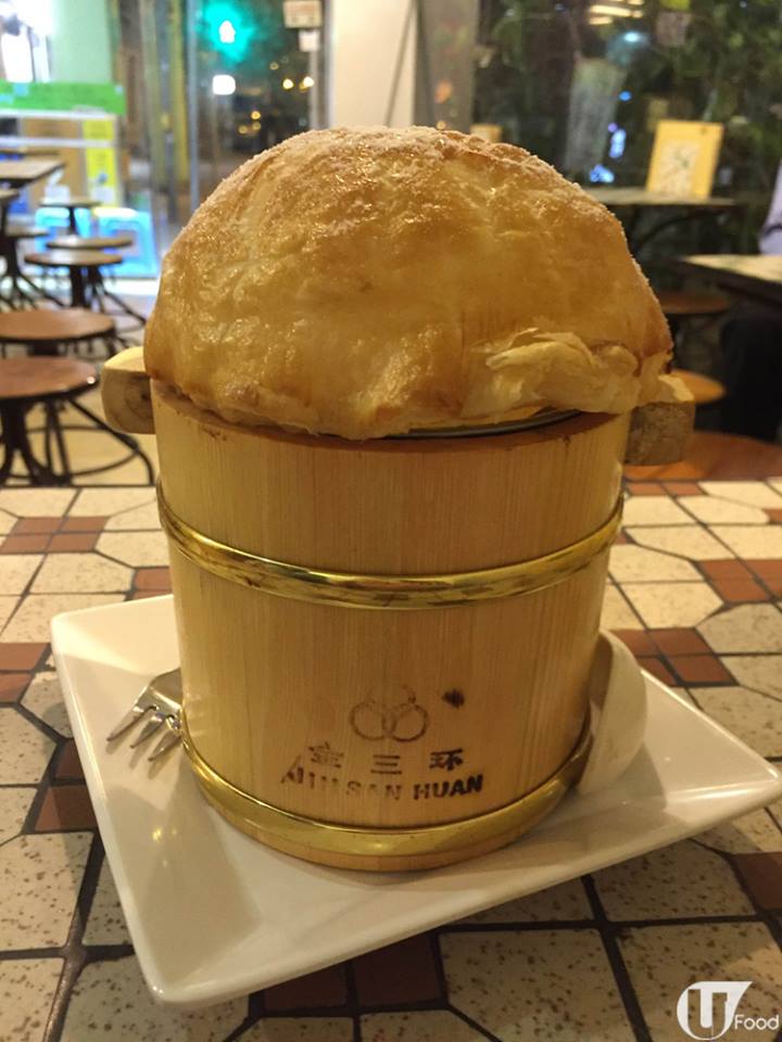 出現喇!睇真啲,原來個豆腐唔係菠蘿皮,而係酥皮,飲酥皮龍蝦湯嗰種酥皮呀!好失望!