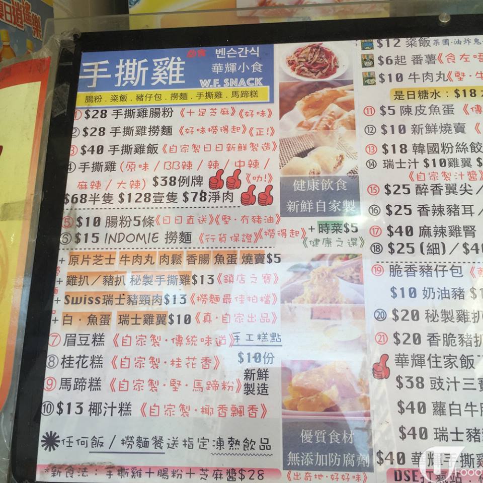 呢間叫「華輝」嘅小食店,其實好多嘢賣,小食都幾特別,除咗一般魚蛋燒賣點心外,仲有韓國粉絲餃、Indomie 撈麵、甜糕點等;當然手撕雞係重點,可以淨食、配撈麵、飯或腸粉。以配腸粉最過癮!行近舖頭,已見店內幾位組姐密密手撕緊雞肉,就知手撕雞係人氣 item!