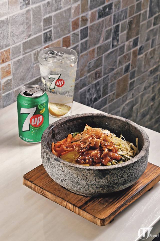 阿飛話你知︰「清爽又解渴的咸檸7up,是解辣的好幫手。」像開業不足兩個月的佳樂冰室,主打熱辣辣的石頭飯及鐵板燒,推介韓式泡菜豚肉石鍋飯,以日本珍珠米配豚肉及自家製的泡菜製成,以熱鍋上枱,一口熱辣石鍋飯配一口清爽的咸檸7up,算是最爽配搭吧!