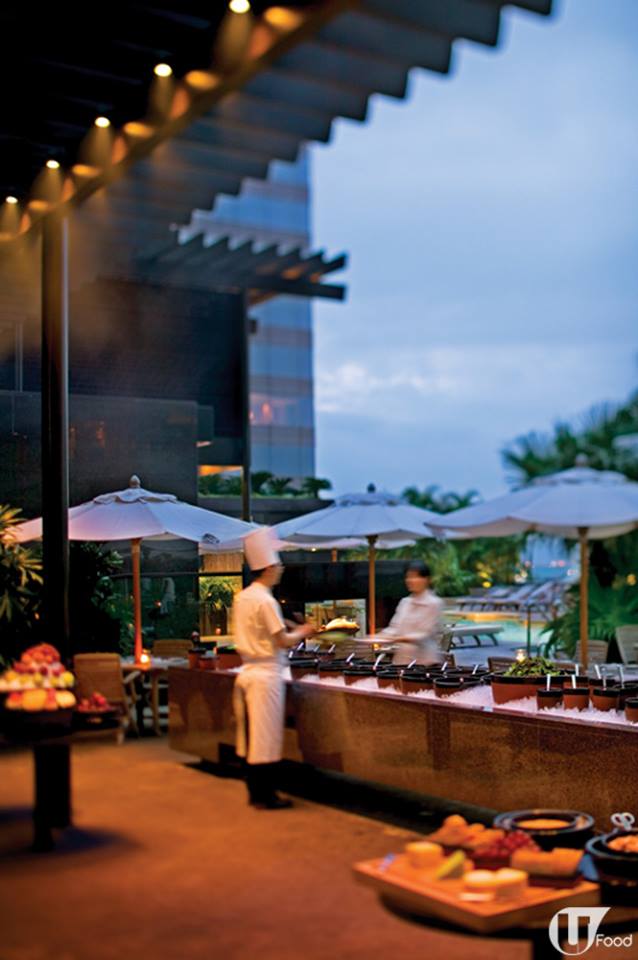 如果你係燒烤 Buffet 精,一定識得灣仔香港君悅酒店的燒烤自助餐,自助餐已推出多年,一様咁受歡迎。餐廳 The Grill 位於酒店池畔,露天座位旁又有不少綠色植物點綴,感覺很舒爽。自助餐咁受歡迎,除咗因為環境好,還因為食物夠多選擇。燒烤前既有沙律、龍蝦、蜜瓜、西班牙冷湯等開開胃,BBQ 食物更花碌碌,而且大廚專挑選同類中最精皂的,豬肋排、海鮮、香腸,即點即烤,炭香滿滿。提供 Veuve Clicquot RICH 香檳配搭,呷一口香檳,吹一陣秋風,爽!