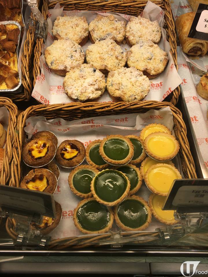 金鐘太古廣場地庫嘅超市 Great Food Hall,平日都係闊太或外藉人士閒逛嘅多,小記去開附近工作想買枝茶解解渴,行到去麵包櫃枱 area,驚人發現呢個青 BB 嘅綠茶蛋撻