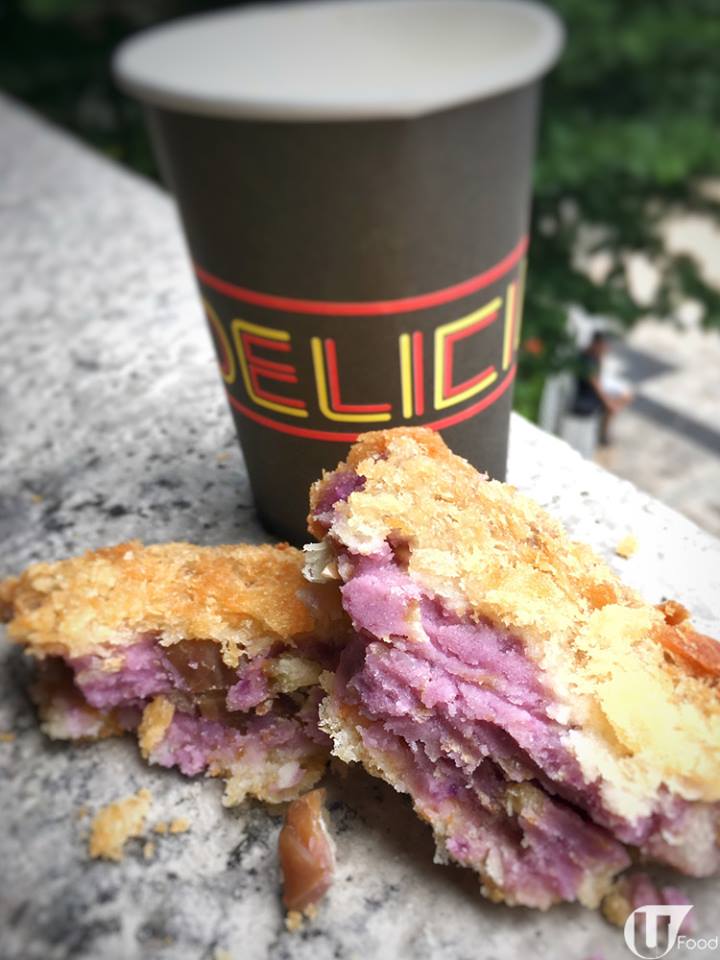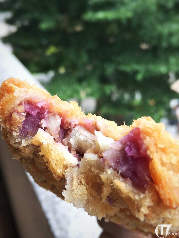 如果旺角係最潮小食集中營,屯門都算係新界區小食重鎮。好似呢個日式紫薯栗子餅,就喺屯門一個屋苑商場內一間叫「Delicious」的小食店搵到。外表睇嚟,同普通炸薯餅無分別,不過一搣開,即刻見到一片紫色湧出嚟,紫薯蓉爆滿!入口綿滑,食到淡淡紫薯味,仲食到栗子粒!栗子粒質感似炒栗子,味道亦唔似日本栗子般香甜,不過伴襯滑滑的紫薯,可以加添口感。