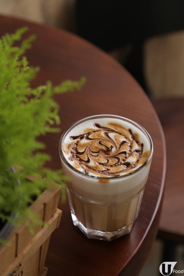奶泡綿密,咖啡味溫和順滑,面層用朱古力醬和 espresso 勾畫花形圖案。