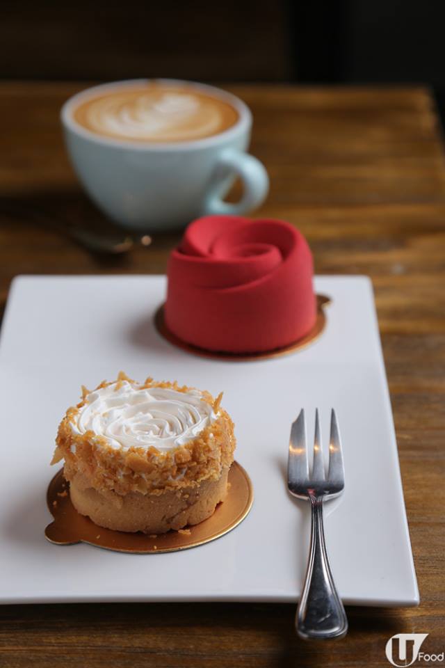 店內供應幾款甜品和三文治。這兩款花形蛋糕最吸睛,前者是焦糖香蕉味,後者是紅桑子朱古力忌廉味,配黑咖啡最夾。