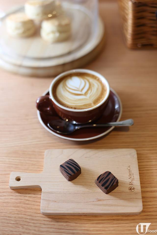 咖啡味溫和,帶焦糖甜及榛子香,朱古力最先散發茉莉香,尾段滲透伯爵茶味,跟鮮奶味突出的咖啡互相融合。