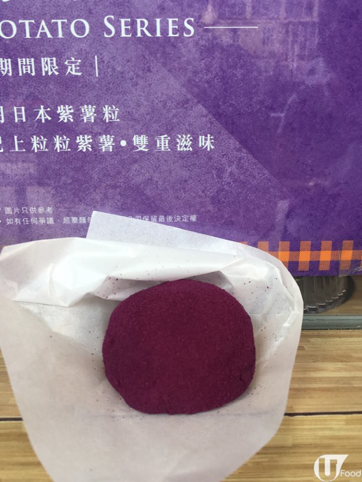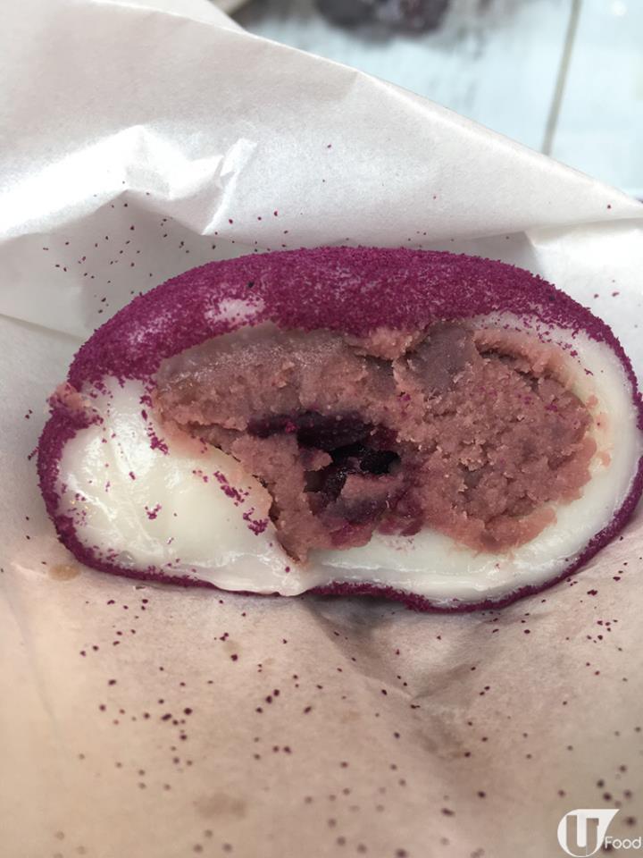 堅係大的大福,直徑有成 6cm ,一見到都被 size 嚇窒!大褔整個表面灑滿紫薯粉,影相一流。