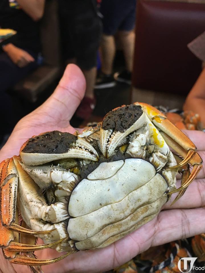 蟹身有巴掌大,蟹公大概 3 兩半至 4 兩,蟹乸大概重 3 兩,拎上手都幾足秤。