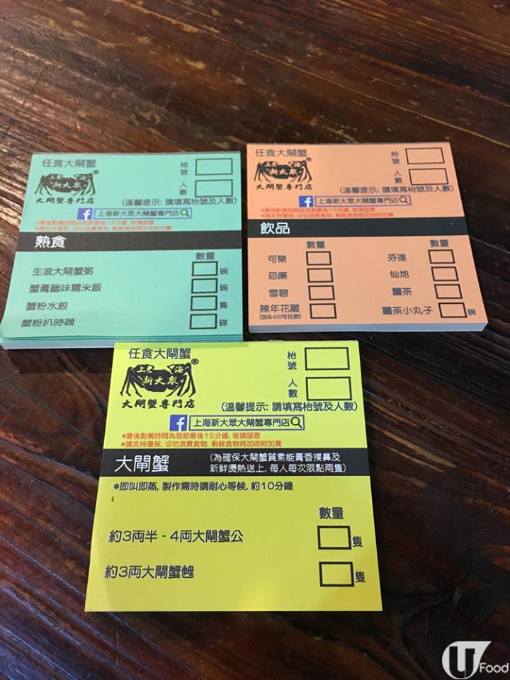 註:任食限時 75 分鐘,包括大閘蟹和前菜菜式、薑茶小丸子、薑茶和汽水,設加一。