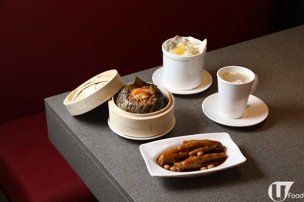 $108 位套餐包杏汁燉白肺、鮑魚汁炆鳳爪、秘製瑤柱荷葉飯及熱香檸薏米水,只限新店供應,數量有限。