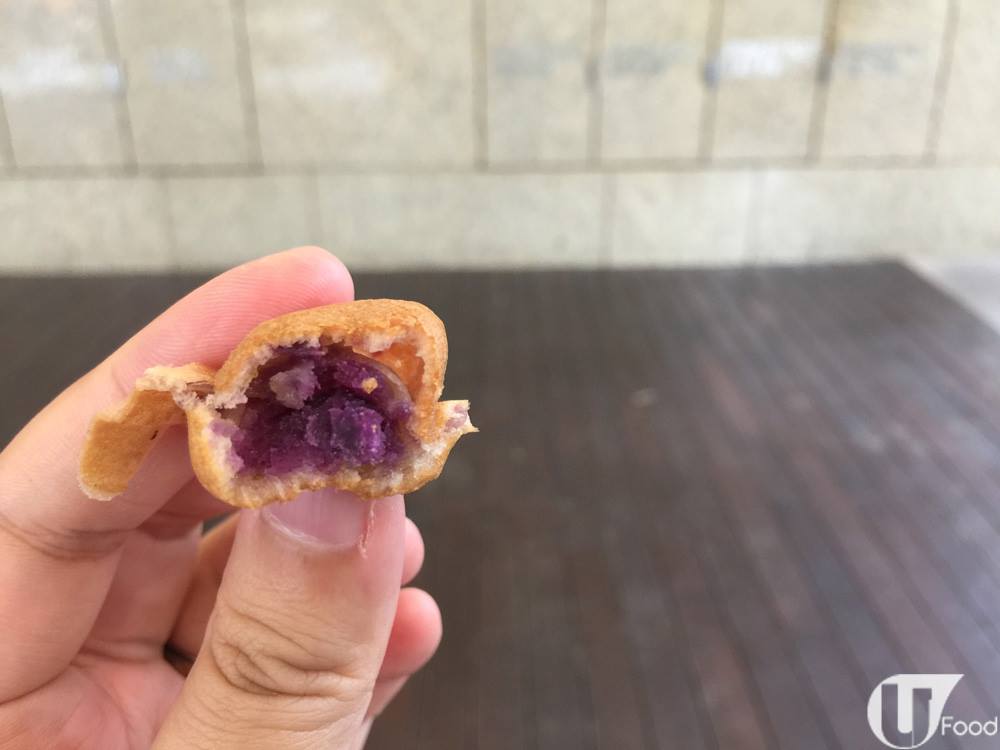 雞蛋仔外脆內煙韌,用紫薯、番薯粒做餡,目測比例為 8 分紫薯 2 分番薯。雖然出爐時聞唔香味,不過就食到濃濃嘅紫薯味,微微帶甜,軟綿帶糯,紫薯控表示收貨。紫薯番薯都係由總店出貨,確保雞蛋仔質素。