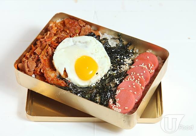 以韓國麻油拌飯,加上泡菜炒豚肉、煎蛋、午餐肉腸,將所以配料拌勻來吃,香辣惹味,是最地道的風味。