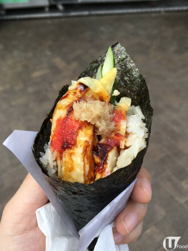 仲食海膽手卷?要食梗係食手卷界新人王 — 海南雞手卷。以紫菜包住真.雞油飯,飯粒企身,富雞油甘香卻不油膩,飯仲係熱暖;雞肉去晒骨,嫩滑之餘食到香料味,淋上惹味醬汁、黑豉油、薑蓉和青瓜,係正宗海南雞飯味道!
