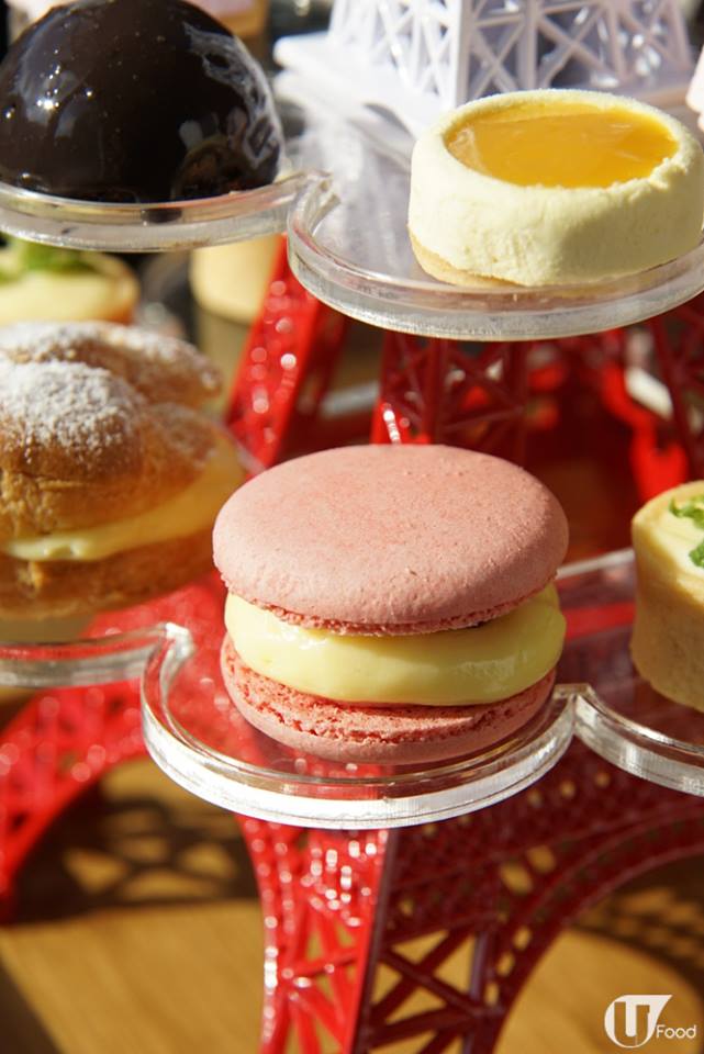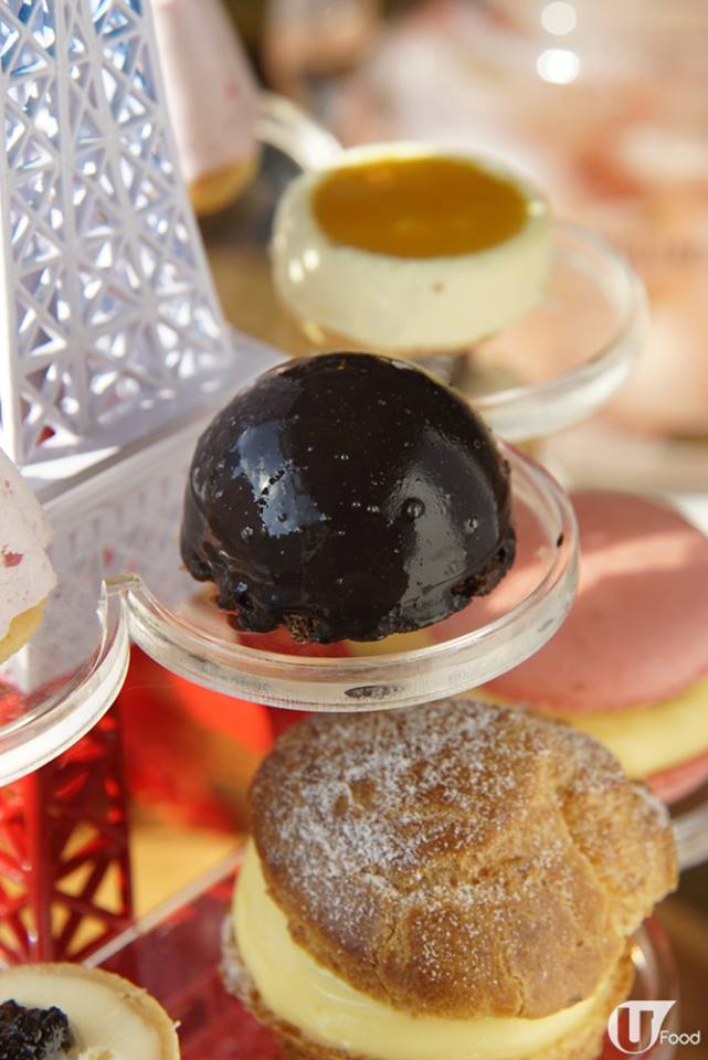 老闆 Stanley 指推出這個 tea set,意念來自澳門巴黎人開幕,「好想讓未有機會去巴黎看鐵塔嘅朋友,嚟 cafe 都可以感受到法式浪漫。」計我話嚟食個 tea 仲實際,唔止有漂亮造型,食物質素亦好高!老闆是五星酒店甜品師傅出身,設計精緻甜點無難度。一眼望去,7 款甜品中,最吸睛嘅係「75% 朱克力慕絲配榛子朱古力脆底」,用上 3 種朱古力,包括最外層可可粉製朱古力、中間的 75% 濃度朱古力製慕絲及最底層的 65% 朱古力濃度製榛子朱古力脆底,咬一口,感受唔同的朱古力層次。亮點仲有「黑松露芝士撻」,芝士夠 creamy,撻底夠脆口,配合黑松露嘅濃烈香味,鹹甜交融。另外,女仔見到都好心動的「野生草莓果醬配馬卡龍」,粉紅外表已吸引,原來用上野生士多啤梨製作,味道更清香,不過質地軟身,吃時小心餡料溢出。