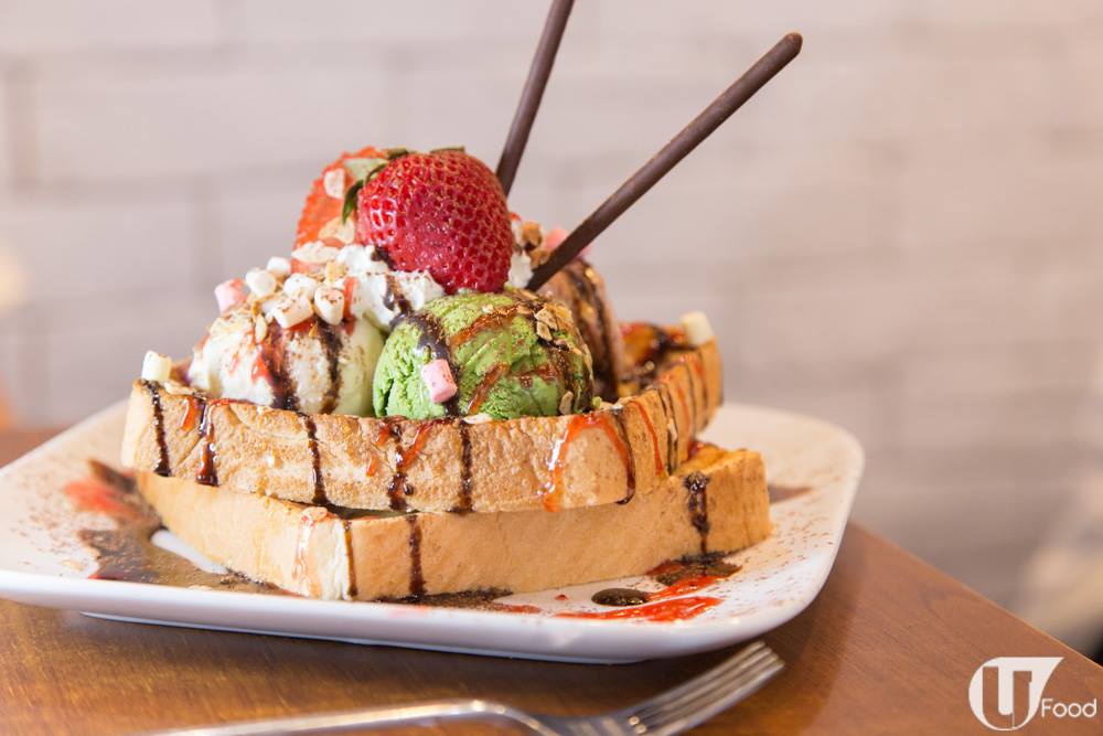 店內名物是「三色蜜糖厚多士」,4 種雪糕口味包括士多啤梨、呍呢嗱、朱古力及綠茶味,任揀 3 款。最大亮點係個蜜糖厚多士,鋪滿濃濃蜜糖烘烤,蜜糖香滲透多士,夾埋大堆頭雪糕陣,食完真係大滿足!