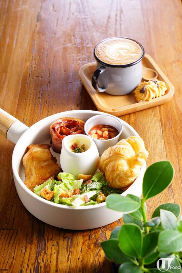 這店的全日早餐最大賣點是全部可以自選!麵包、主菜各選一款,還可從兩組配菜中,各選兩款食物,別看碟上只出現 6款食物,配搭起來竟可以變出 720 款配搭,食足幾個月都唔怕重複。十多款食物分成主菜 A、麵包 B、配菜 C 及配菜 D 四類,細食的可選 A + B + C 組合,想滿足感再大啲,可以揀 A + B + C + D。