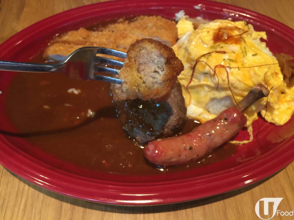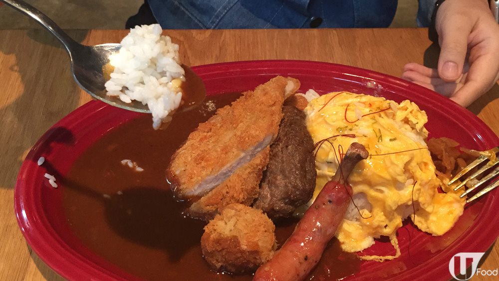 餐廳將千里達蠍子辣椒汁加入餐廳招牌嘅咖喱汁之中,有甚麼配料?有炒滑蛋、烤肉腸、吉列豬扒彈(肉丸)、吉列豬扒及日式漢堡扒!大大份,就算唔計辣度,女生都好難食得晒,睇嚟都唔易挑戰㗎!(溫馨提示:辣椒只為裝飾之用,不在挑戰之內,放心放心!)