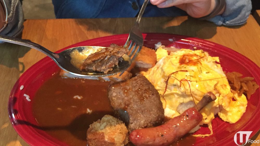 敗筆處在於漢堡扒,雖然牛味、豬味夠香夠濃郁,但口感略嫌過韌,有點嚡口。